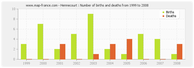 - Hennecourt in 2008 : 1 births and 3 deaths