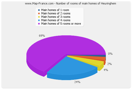 - Number of main homes of Heuringhem of 1 room : 0 - Number of main homes of Heuringhem of 2 rooms : 12 - Number of main homes of Heuringhem of 3 rooms : 20 - Number of main homes of Heuringhem of 4 rooms : 20 - Number of main homes of Heuringhem of 5 rooms and more : 336 |