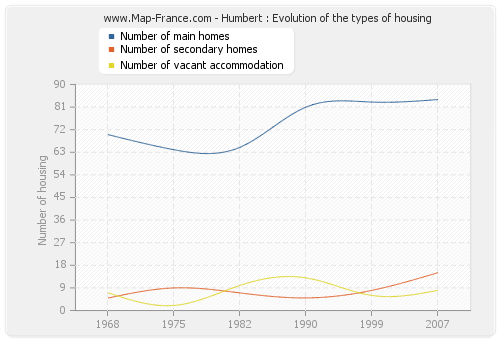 The number of housing of Humbert was 107 in 2007, 97 in 1999, 99 in 1990, 82 in 1982, 75 in 1975 and 82 in 1968.