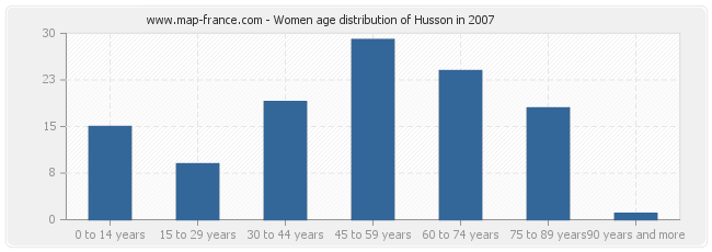 - Men inhabitants Husson in 2007 were 119 - Women inhabitants in 2007 were 115