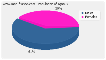 - Men inhabitants Ignaux in 2007 were 43 - Women inhabitants in 2007 were 28