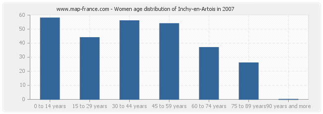 Women population distribution of Inchy-en-Artois by age in 2007 :