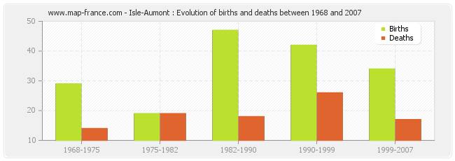 Isle-Aumont : evolution of births and deaths from 1968 to 2007