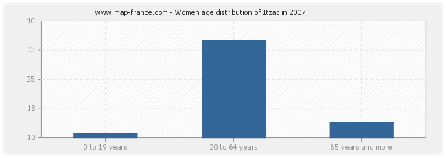 - Men inhabitants Itzac in 2007 were 68 - Women inhabitants in 2007 were 60
