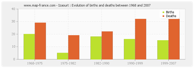 - Izaourt in 2007 : 2 births and 5 deaths