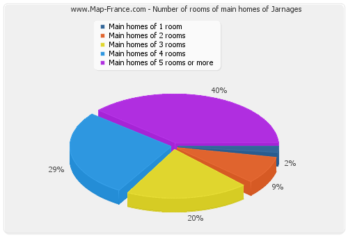 - Number of main homes of Jarnages of 1 room : 5 - Number of main homes of Jarnages of 2 rooms : 21 - Number of main homes of Jarnages of 3 rooms : 47 - Number of main homes of Jarnages of 4 rooms : 47 - Number of main homes of Jarnages of 5 rooms and more : 91 |