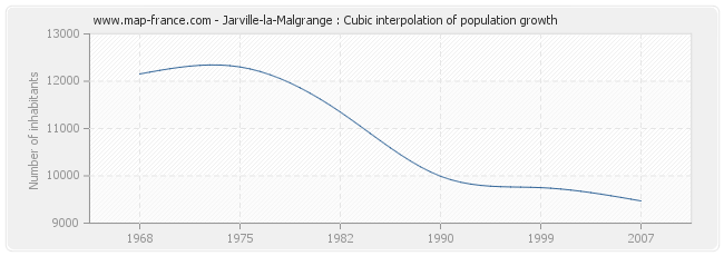 This curve shows the history of the population of Jarville-la-Malgrange from 1968 to 2007 in cubic interpolation. This provides more precisely the population of the municipality of Jarville-la-Malgrange the years where no census has been taken.