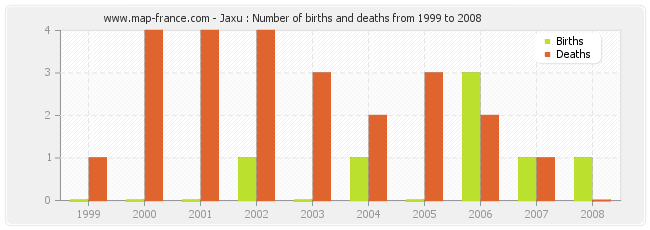 Jaxu : births and deaths from 1999 to 2008