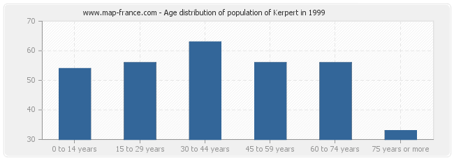 - Population of Kerpert from 30 to 44 years : 63 inhabitants