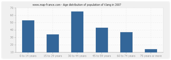 - Population of Klang from 30 to 44 years : 65 inhabitants