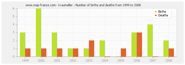 - Krautwiller in 2008 : 2 births and 1 deaths