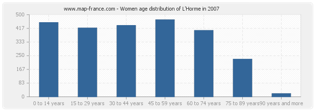 - Population of L'Horme from 75 years or more : 389 inhabitants