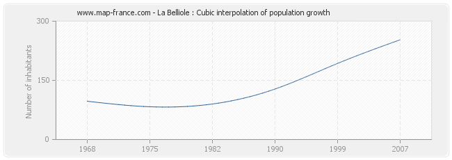 This curve shows the history of the population of La Belliole from 1968 to 2007 in cubic interpolation. This provides more precisely the population of the municipality of La Belliole the years where no census has been taken.