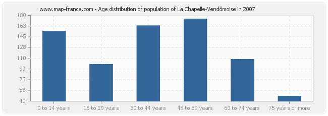 - Population of La Chapelle-Vendômoise from 30 to 44 years : 175 inhabitants