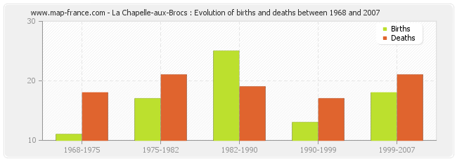 La Chapelle-aux-Brocs : evolution of births and deaths from 1968 to 2007