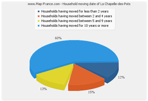 - Number of households of La Chapelle-des-Pots having moved for 10 years or more : 180