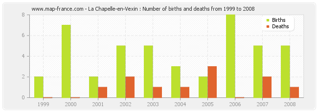 La Chapelle-en-Vexin : births and deaths from 1999 to 2008