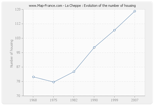The number of housing of La Cheppe was 119 in 2007, 108 in 1999, 98 in 1990, 84 in 1982, 78 in 1975 and 81 in 1968.