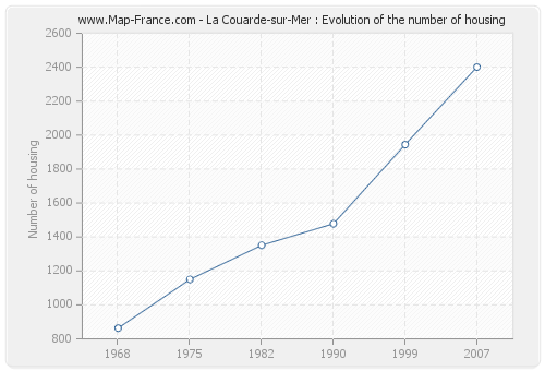 The number of housing of La Couarde-sur-Mer was 2 401 in 2007, 1 944 in 1999, 1 478 in 1990, 1 351 in 1982, 1 150 in 1975 and 863 in 1968.