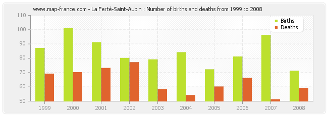 - La Ferté-Saint-Aubin in 2008 : 71 births and 59 deaths