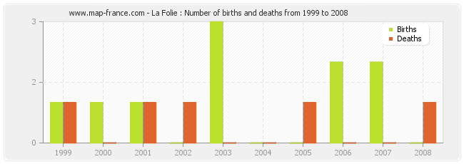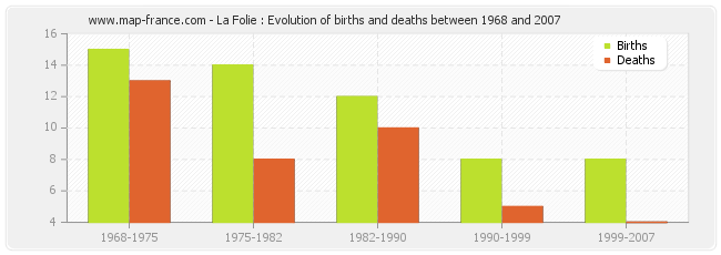 Population of La Folie was 111 inhabitants in 2007, 114 inhabitants in 1999, 102 inhabitants in 1990, 124 inhabitants in 1982, 153 inhabitants in 1975 and 178 inhabitants in 1968.