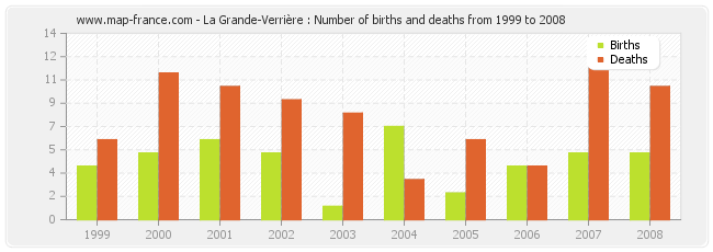 La Grande-Verrière : births and deaths from 1999 to 2008