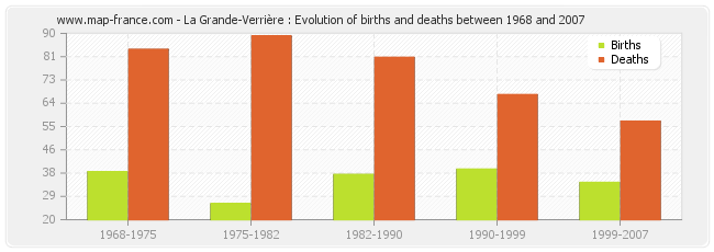 La Grande-Verrière : evolution of births and deaths from 1968 to 2007