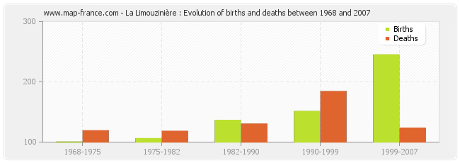 La Limouzinière : evolution of births and deaths from 1968 to 2007