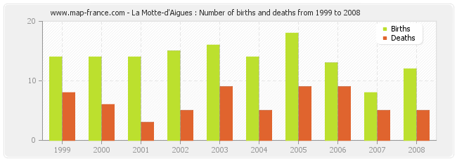 - La Motte-d'Aigues in 2008 : 12 births and 5 deaths