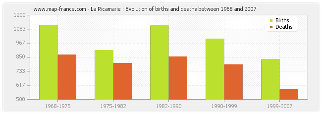 La Ricamarie : Evolution of births and deaths between 1968 and 2007