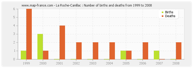 La Roche-Canillac : births and deaths from 1999 to 2008