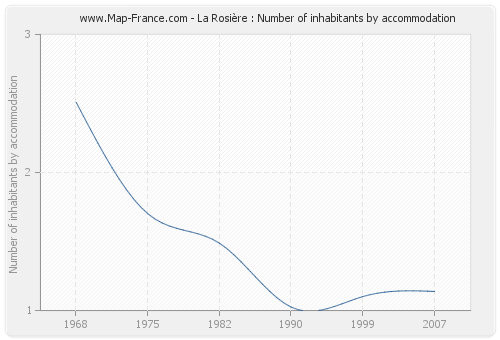 The population of La Rosière was 99 inhabitants in 2007, 87 inhabitants in 1999, 86 inhabitants in 1990, 113 inhabitants in 1982, 136 inhabitants in 1975 and 183 inhabitants in 1968. Meanwhile, the number of housing of La Rosière was 87 in 2007, 79 in 1999, 84 in 1990, 76 in 1982, 80 in 1975 and 73 in 1968.