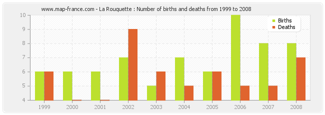 - La Rouquette in 2008 : 8 births and 7 deaths