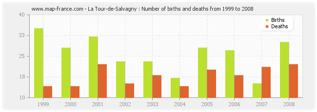 La Tour-de-Salvagny : births and deaths from 1999 to 2008