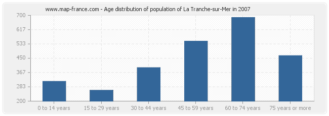- Population of La Tranche-sur-Mer from 60 to 74 years : 687 inhabitants