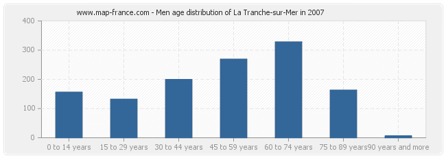 Men population distribution of La Tranche-sur-Mer by age in 2007 :