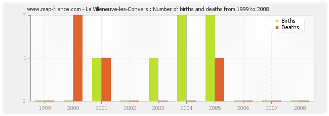 La Villeneuve-les-Convers : births and deaths from 1999 to 2008