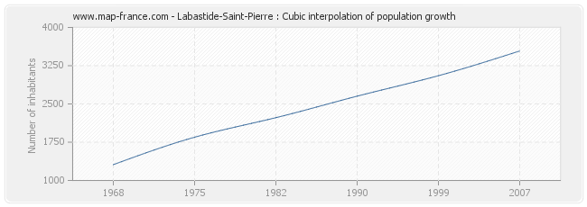This curve shows the history of the population of Labastide-Saint-Pierre from 1968 to 2007 in cubic interpolation. This provides more precisely the population of the municipality of Labastide-Saint-Pierre the years where no census has been taken.