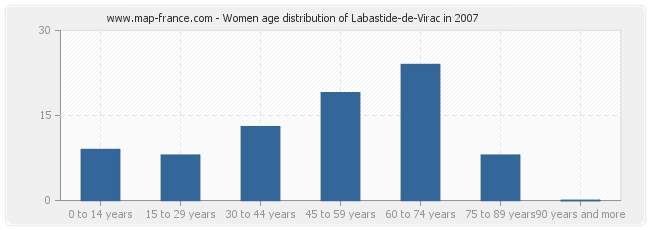 - Labastide-de-Virac women inhabitants from 60 to 74 years : 24
