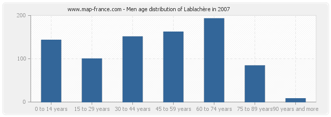 - Lablachère men inhabitants from 60 to 74 years : 193