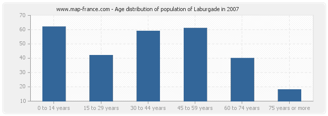 - Population of Laburgade from 60 to 74 years : 30 inhabitants