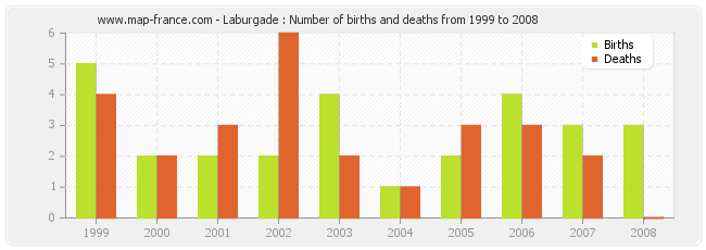 - Men inhabitants Laburgade in 2007 were 138 - Women inhabitants in 2007 were 144