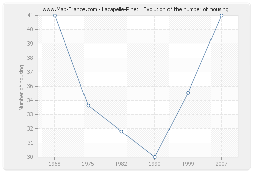 The number of housing of Lacapelle-Pinet was 41 in 2007, 35 in 1999, 30 in 1990, 32 in 1982, 34 in 1975 and 41 in 1968.