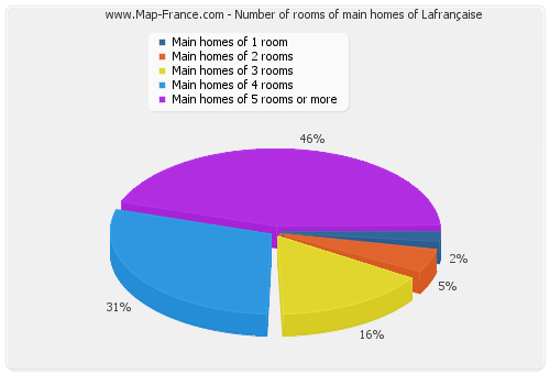 - Number of main homes of Lafrançaise of 1 room : 26 - Number of main homes of Lafrançaise of 2 rooms : 58 - Number of main homes of Lafrançaise of 3 rooms : 185 - Number of main homes of Lafrançaise of 4 rooms : 185 - Number of main homes of Lafrançaise of 5 rooms and more : 538 |