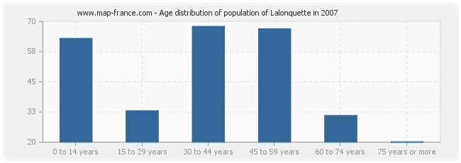 - Population of Lalonquette from 30 to 44 years : 68 inhabitants