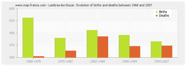 Lambres-lez-Douai : evolution of births and deaths from 1968 to 2007