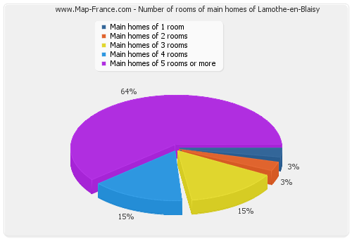 - Number of main homes of Lamothe-en-Blaisy of 1 room : 1 - Number of main homes of Lamothe-en-Blaisy of 2 rooms : 1 - Number of main homes of Lamothe-en-Blaisy of 3 rooms : 5 - Number of main homes of Lamothe-en-Blaisy of 4 rooms : 5 - Number of main homes of Lamothe-en-Blaisy of 5 rooms and more : 21 |