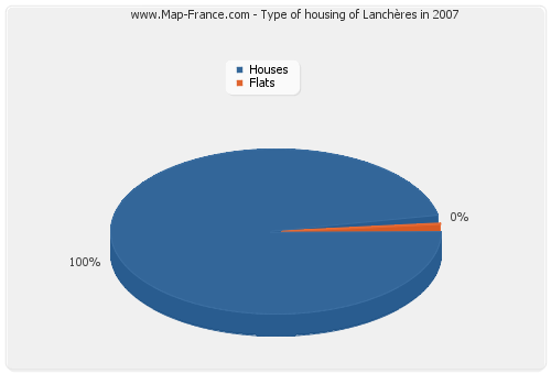 In 2007 the accommodations of Lanchères consisted of 380 main homes, 236 second homes and 23 vacant accommodations.