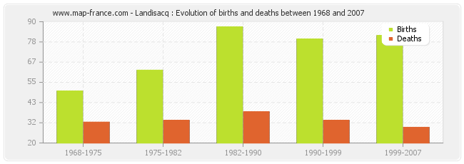 Landisacq : evolution of births and deaths from 1968 to 2007