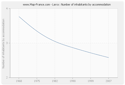 The number of inhabitants of Larra per housing was 2,58 in 2007.